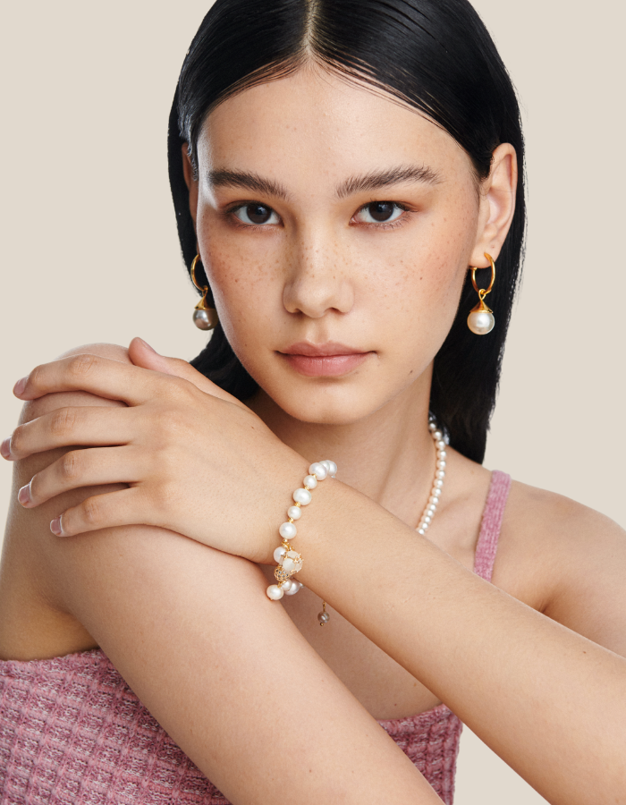 We curate baroque pearls with natural marks, set in sliver and K gold